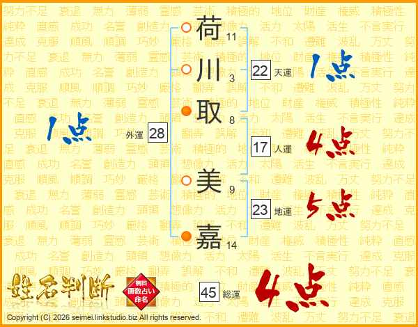 荷川取美嘉さんの総運は45画の4点!