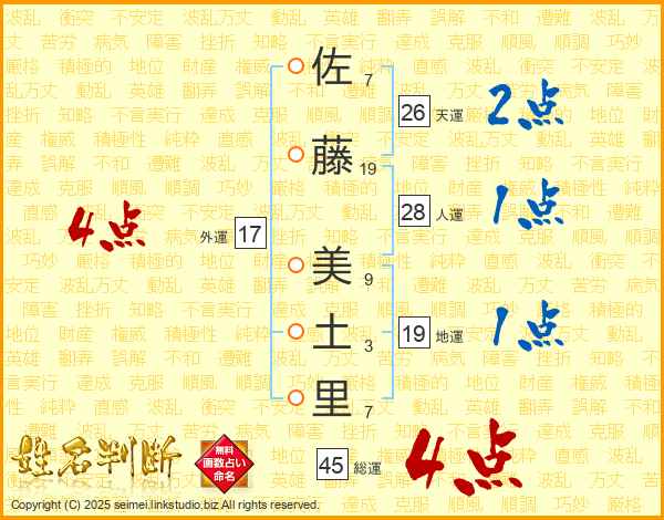 佐(7画)藤(19画) 美(9画)土(3画)里(7画)