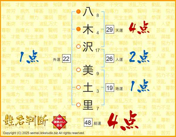 八木沢美土里さんの総運は48画の4点!