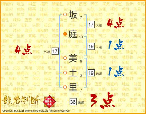 坂庭美土里さんの天運は17画の4点!