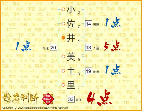 小佐井美土里さんの総運は33画の4点!