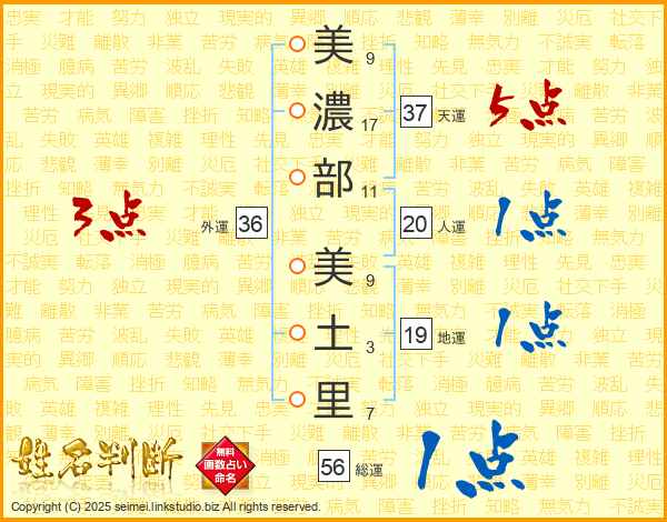 美濃部美土里さんの総運は56画の1点!