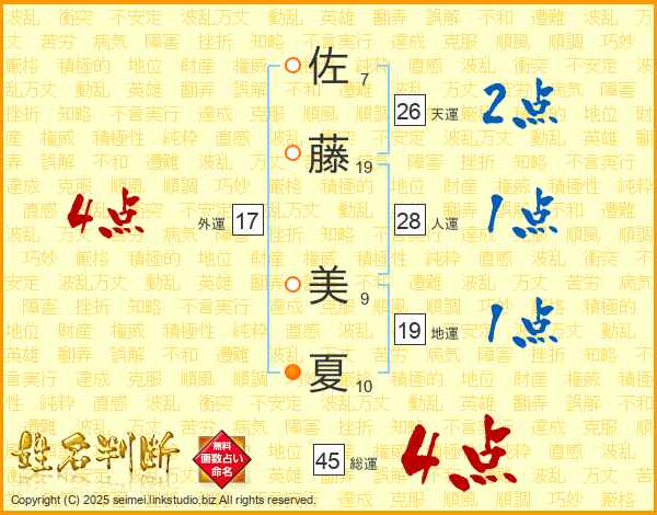 佐藤美夏さんの総運は45画の4点!
