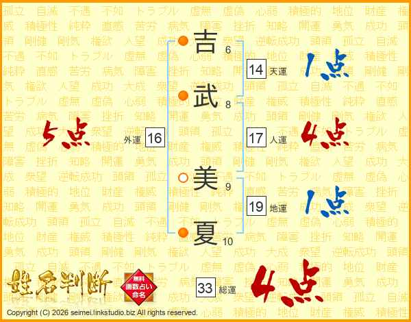 吉武美夏さんの総運は33画の4点!
