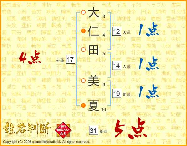 大仁田美夏さんの総運は31画の5点!