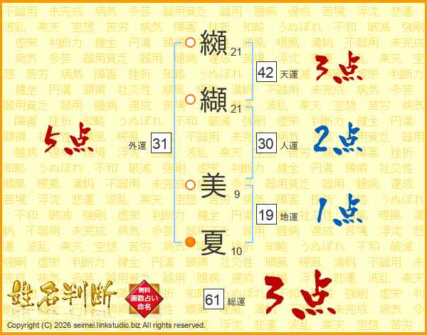 纐纈美夏さんの外運は31画の5点!