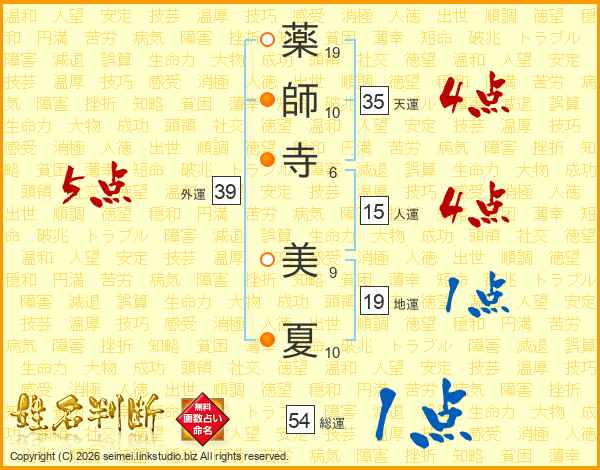 薬師寺美夏さんの外運は39画の5点!