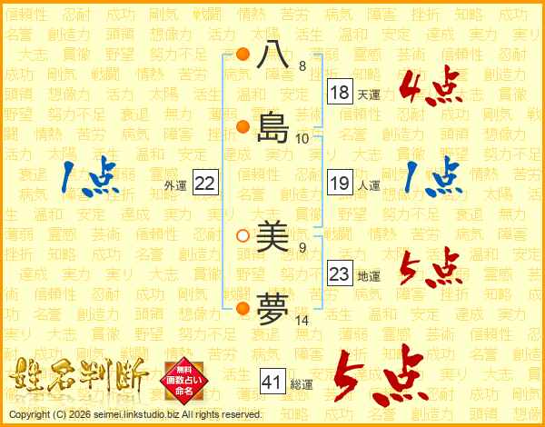 八島美夢さんの総運は41画の5点!