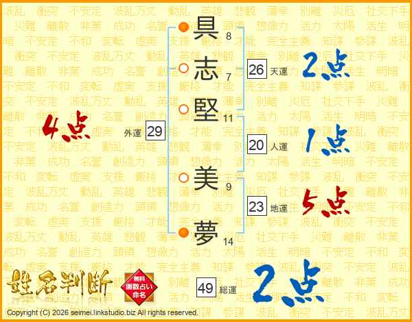 具志堅美夢さんの天運は26画の2点!