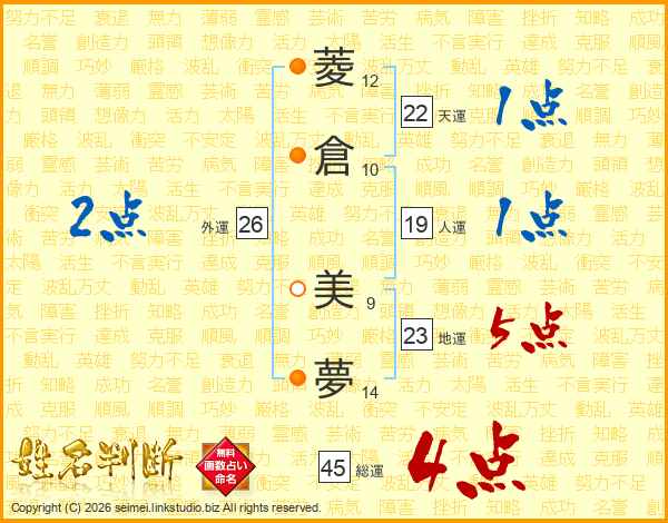 菱倉美夢さんの総運は45画の4点!