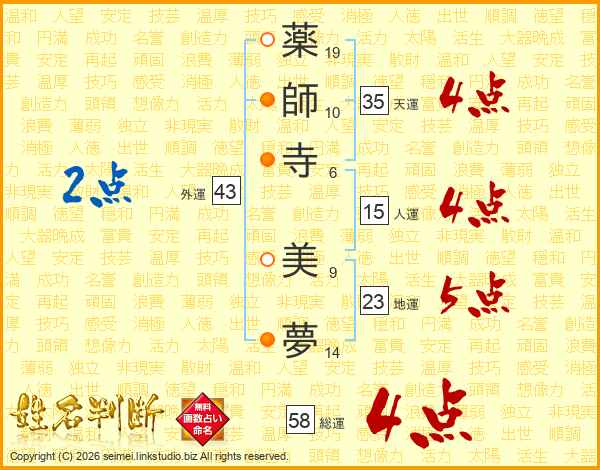 薬師寺美夢さんの総運は58画の4点!