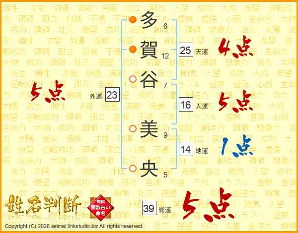 多賀谷美央さんの総運は39画の5点!