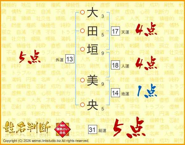 大田垣美央さんの総運は31画の5点!