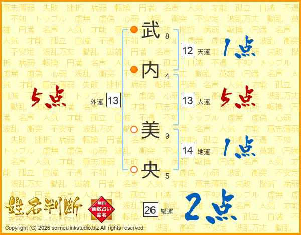 武(8画)内(4画) 美(9画)央(5画)
