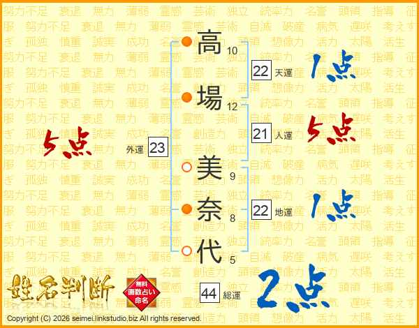 高場美奈代さんの総運は44画の2点!