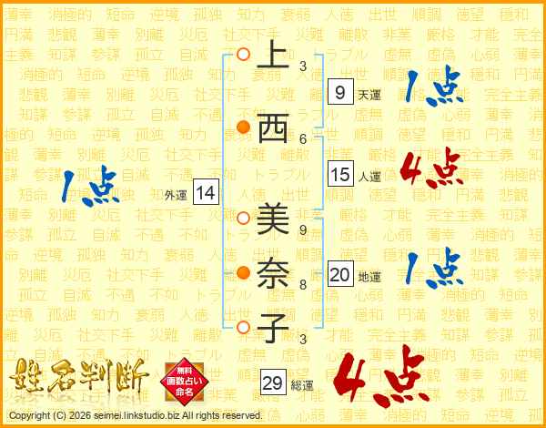 上西美奈子さんの総運は29画の4点!