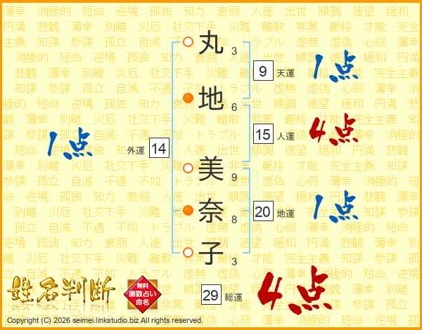 丸地美奈子さんの人運は15画の4点!