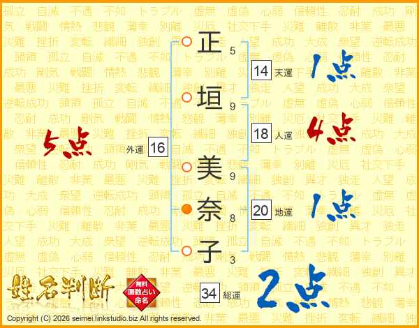 正垣美奈子さんの天運は14画の1点!