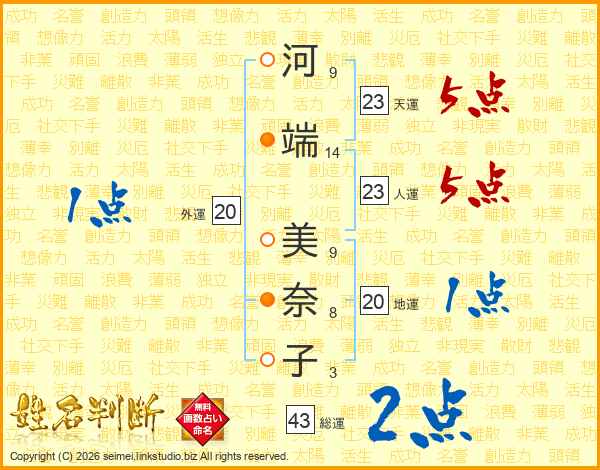 河端美奈子さんの総運は43画の2点!