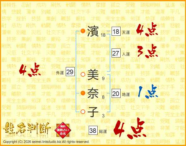 濱美奈子さんの総運は38画の4点!