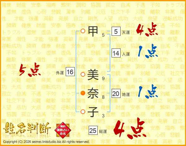 甲美奈子さんの総運は25画の4点!