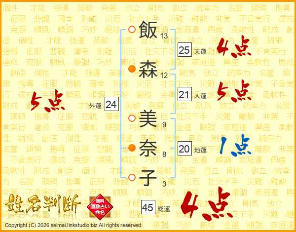 飯森美奈子さんの総運は45画の4点!