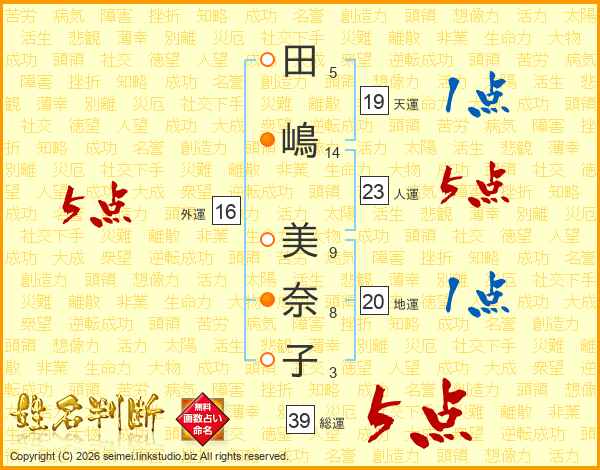田嶋美奈子さんの総運は39画の5点!