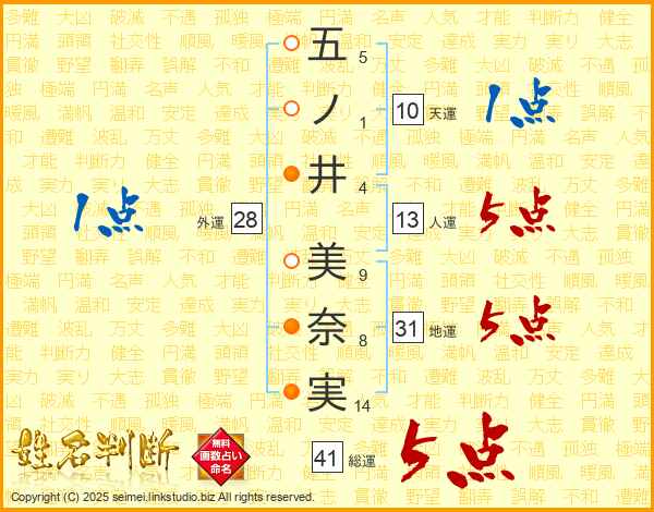 五ノ井美奈実さんの総運は41画の5点!