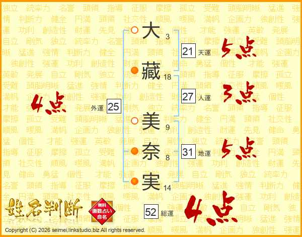 大藏美奈実さんの総運は52画の4点!