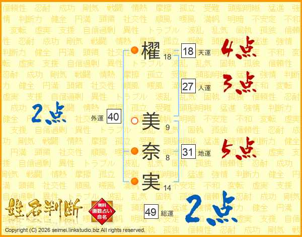 櫂美奈実さんの天運は18画の4点!