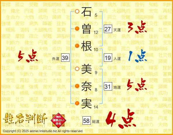 石曽根美奈実さんの総運は58画の4点!