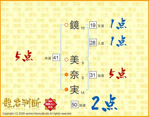 鏡美奈実さんの外運は41画の5点!