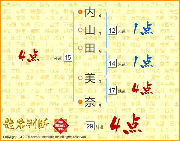 内山田美奈さんの総運は29画の4点!