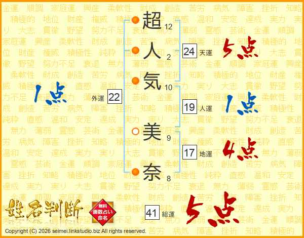 超人気美奈さんの総運は41画の5点!