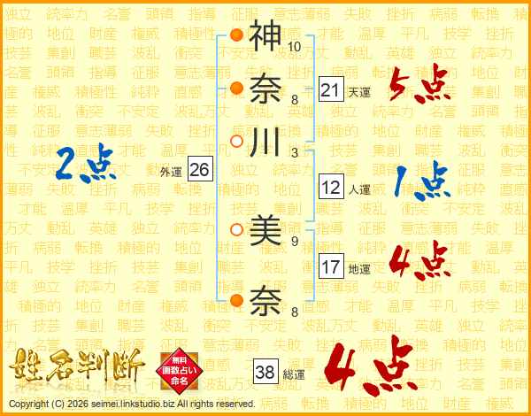 神(10画)奈(8画)川(3画) 美(9画)奈(8画)