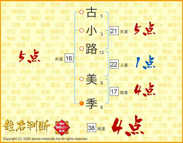 古小路美季さんの総運は38画の4点!