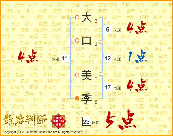 大口美季さんの人運は12画の1点!