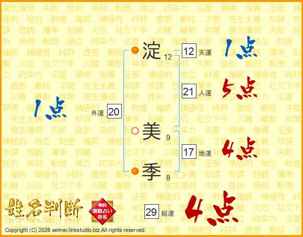 淀美季さんの総運は29画の4点!