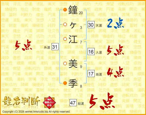 鐘ヶ江美季さんの総運は47画の5点!
