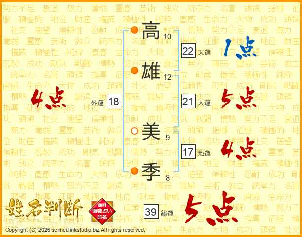 高雄美季さんの外運は18画の4点!