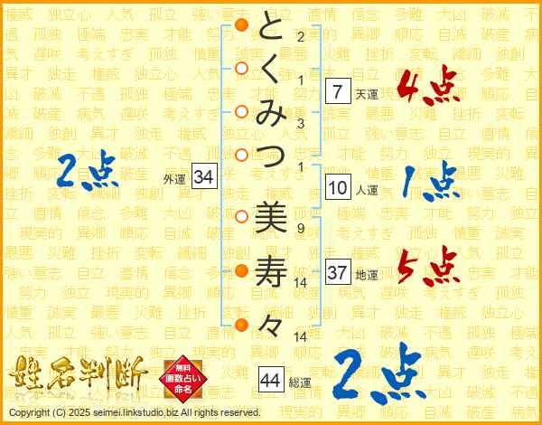 と(2画)く(1画)み(3画)つ(1画) 美(9画)寿(14画)々(14画)
