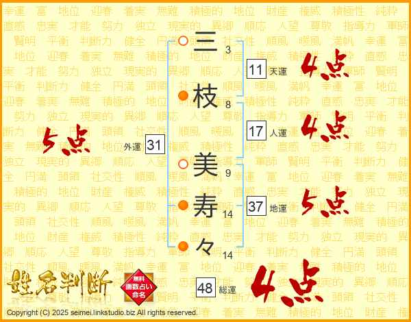 三枝美寿々さんの総運は48画の4点!