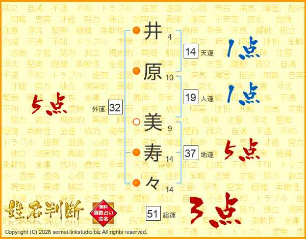 井原美寿々さんの外運は32画の5点!
