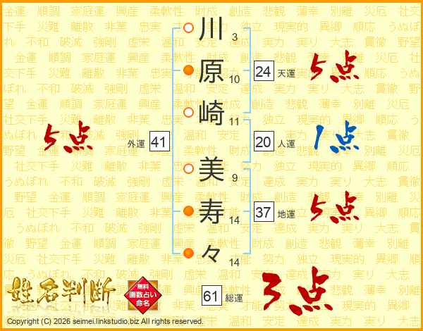 川原崎美寿々さんの地運は37画の5点!