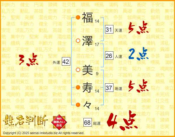 福(14画)澤(17画) 美(9画)寿(14画)々(14画)