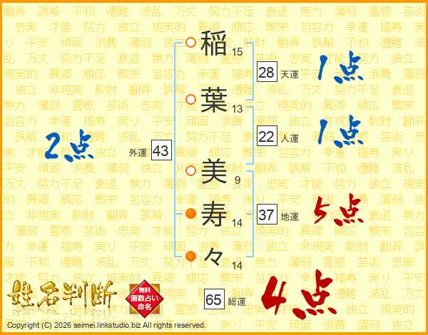 稲葉美寿々さんの総運は65画の4点!