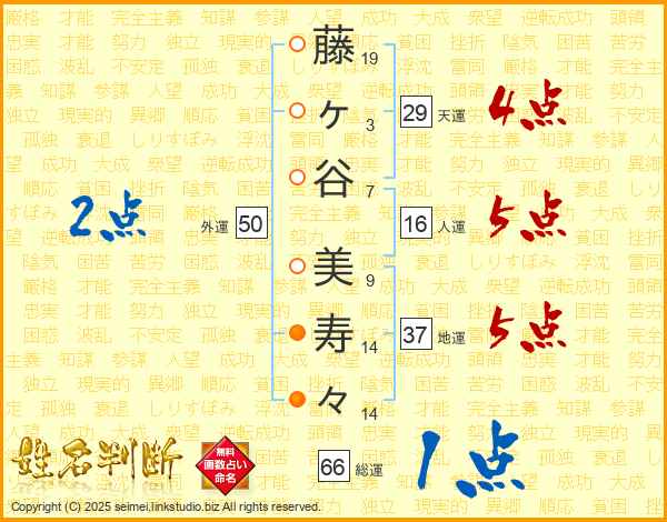 藤ヶ谷美寿々さんの総運は66画の1点!