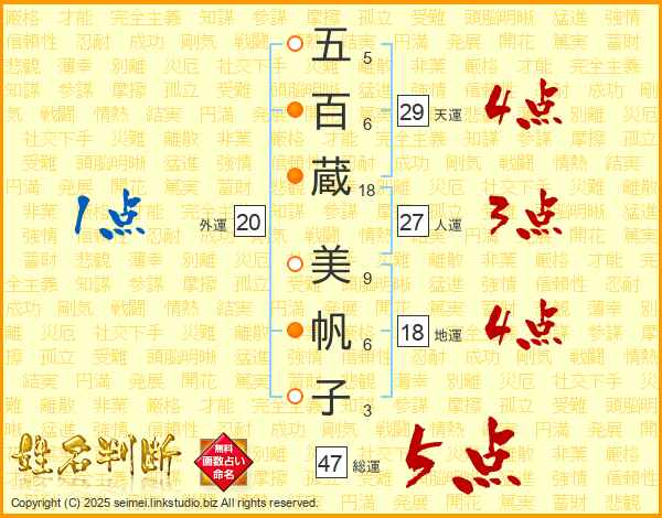 五百蔵美帆子さんの総運は47画の5点!