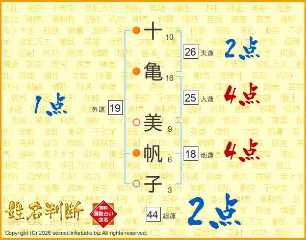 十亀美帆子さんの天運は26画の2点!