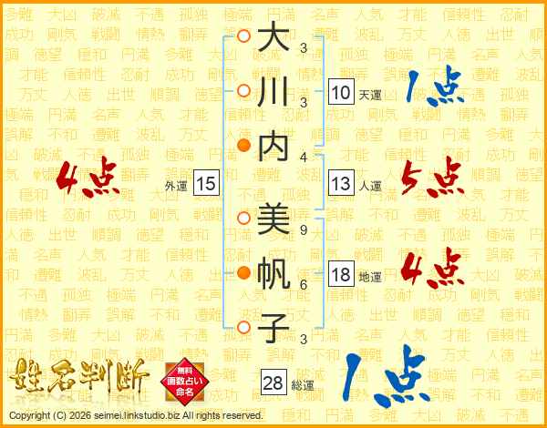 大川内美帆子さんの総運は28画の1点!
